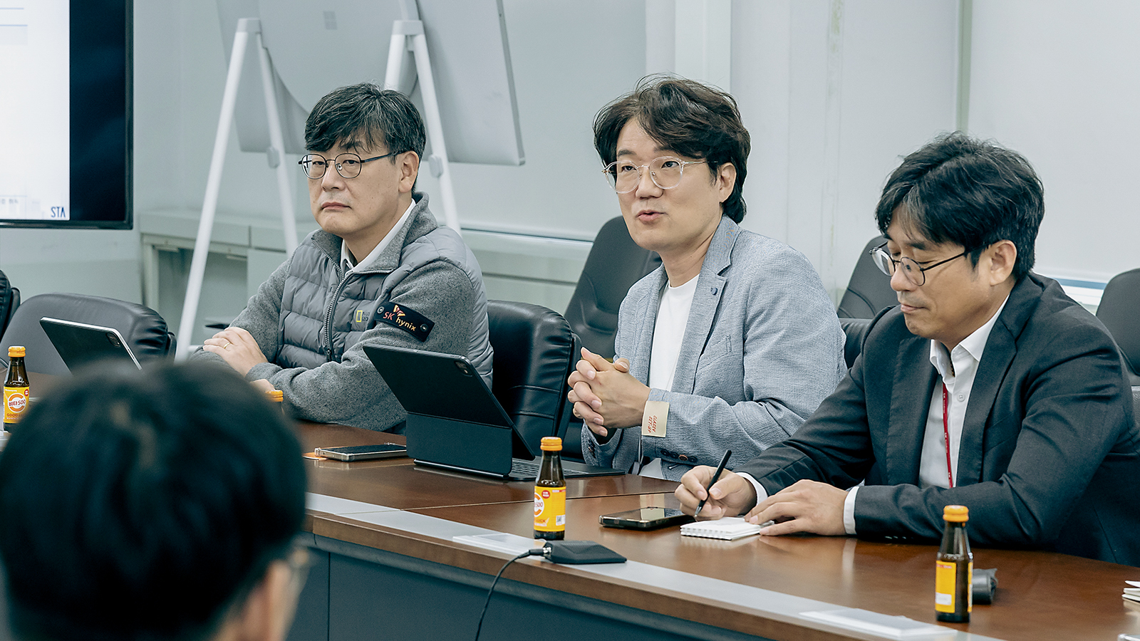 SK하이닉스 이창수 부사장(MIS 담당), 정유인 부사장(MES 담당), (이하 STA) 권원일 대표, 최영재 이사, 이창섭 팀장
